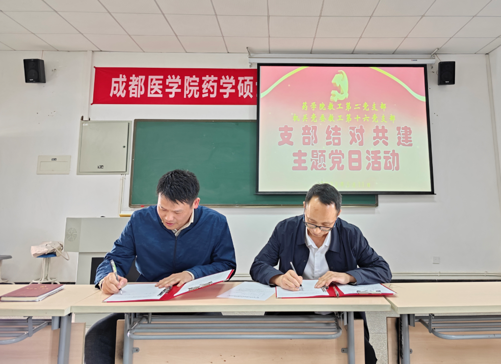 药学院教工第二党支部书记陈宇航对图书馆党支部深入学院开展结对共建、围绕学科服务开展特色党建活动表示热烈欢迎,希望能通过结对共建不断提升基层党支部的创造力、凝聚力和战斗力。机关党委教工第十六党支部书记、图书馆馆长李勇文表示,图书馆会围绕学校中心目标激活党支部工作联动活力,以聚焦学科建设为切入点,以点带面进一步加强支部间的交流与合作。双方党支部书记共同签订了结对共建协议,通过建立长期稳定的协作关系,双方未来将开展特色支部党建活动,努力形成“以共建促党建、以共建促了解、以共建促合作、以共建促发展”的基层党建工作格局。