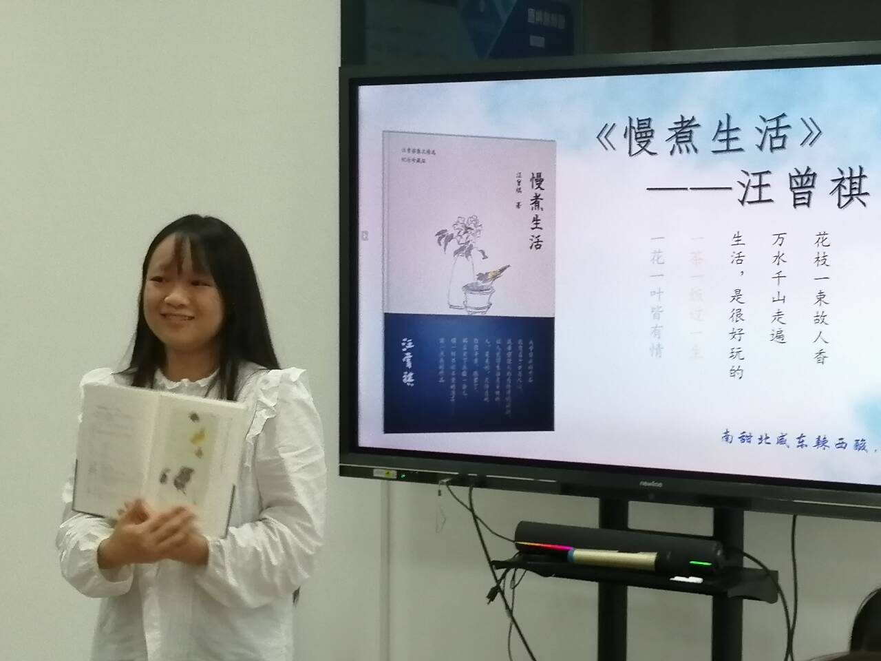活动伊始,同学们将提前准备的主题感悟相互传阅,以文字为媒传递阅读初心与成长思考;在书籍分享环节,三位主讲同学依次登台,分别围绕活动主题,分享了各自在阅读中获得的深刻体悟与生命启迪。他们围绕契合活动主题的书籍展开分享,从书籍核心思想提炼到阅读后的心灵启发,条理清晰、内涵丰富,其富有感染力的表达与独具匠心的视觉呈现,赢得了在场师生的阵阵掌声。